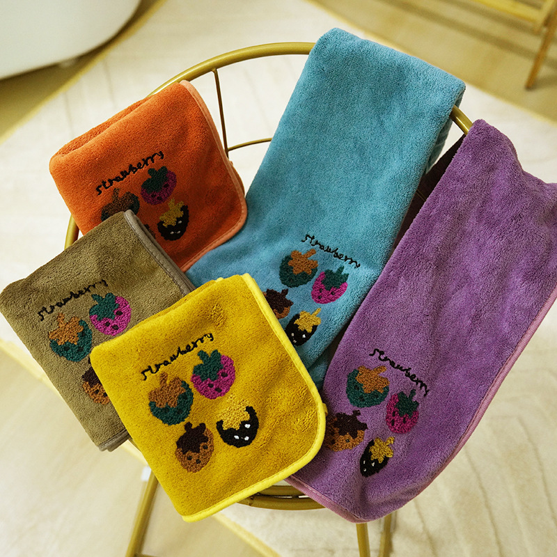 イチゴ柄の珊瑚フリースタオル、厚手で吸水性があり、速乾性があり、毛羽立ちにくい、家庭用入浴タオル、髪を乾かすタオル