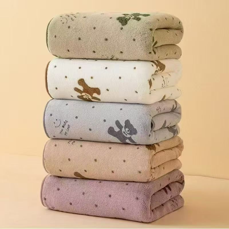 卡通可爱熊珊瑚绒毛巾浴巾速干不易掉毛加厚柔软吸水洗澡裹巾批发