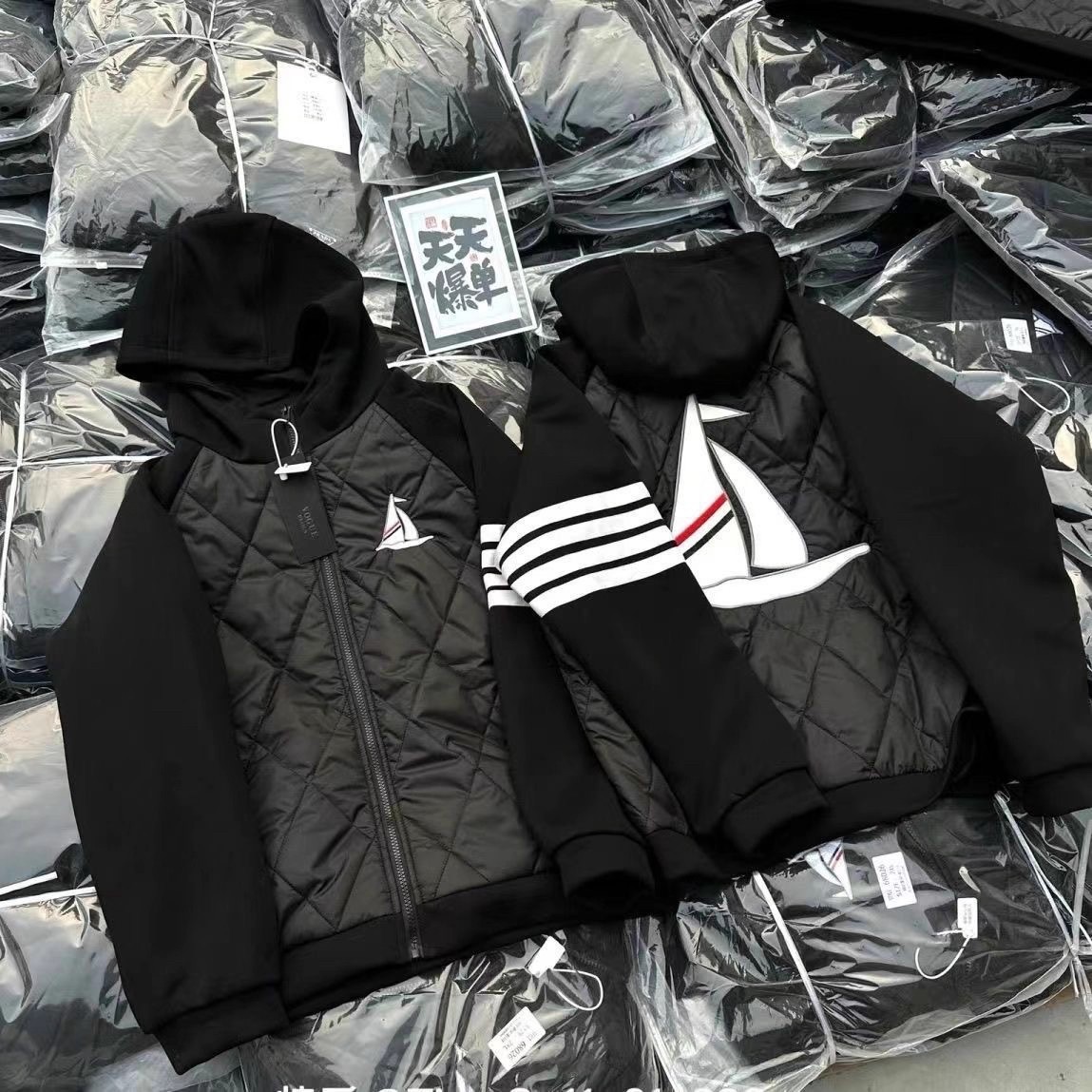 此款衣服胸前的标志为魔术贴粘扣可以拆卸,帽子也可以拆卸。