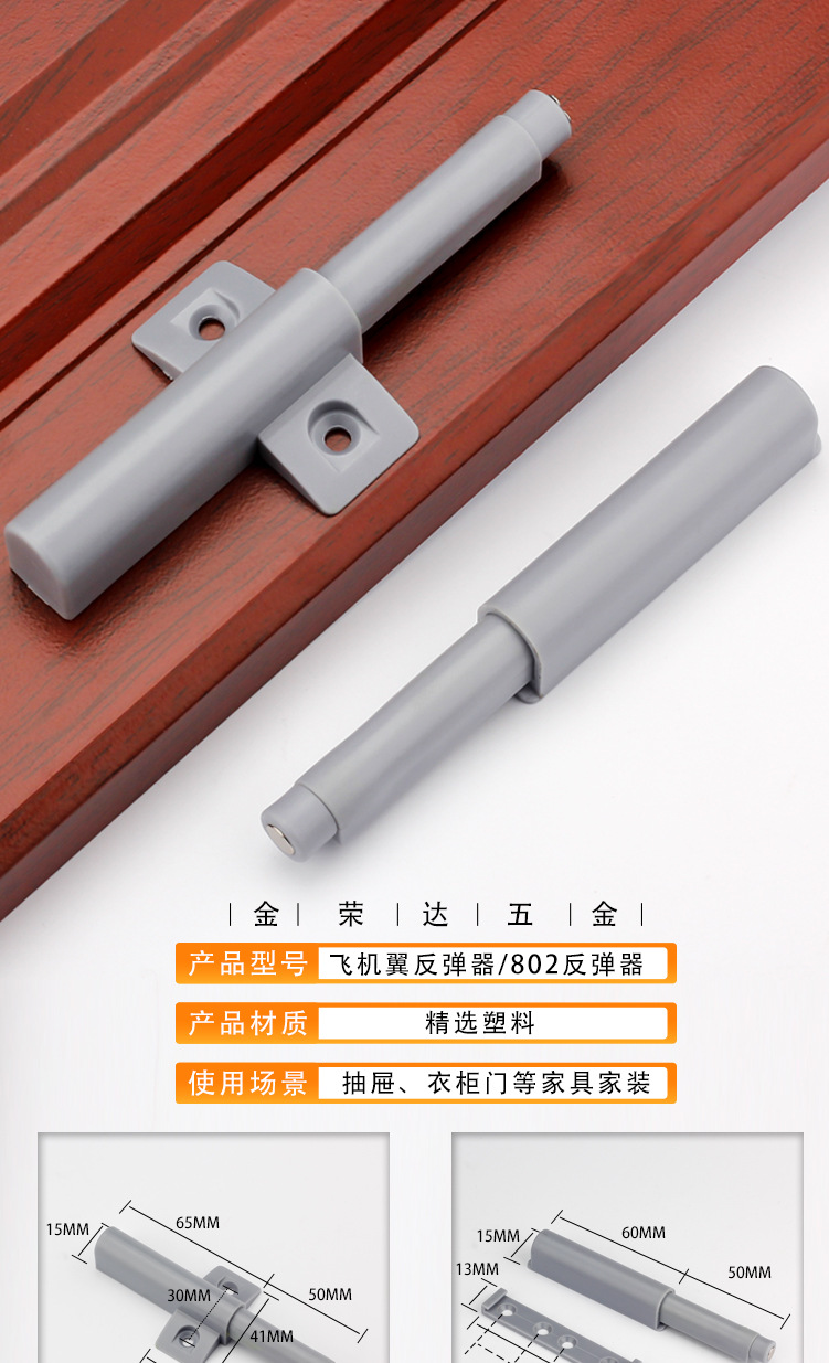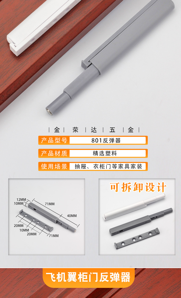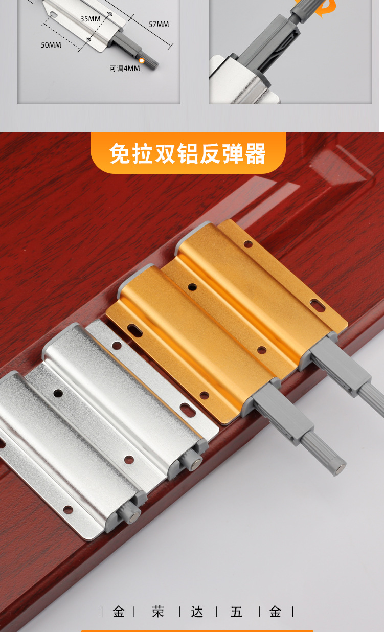 金栄達アルミニウム合金単重反発器キャビネットドアステンレス反発器取っ手なし押圧式反発器