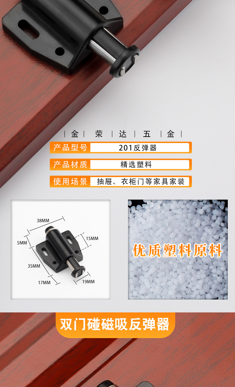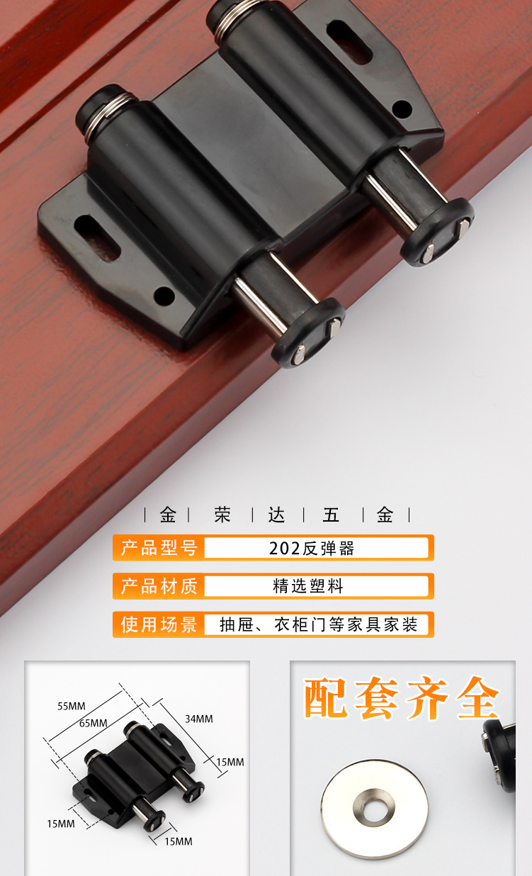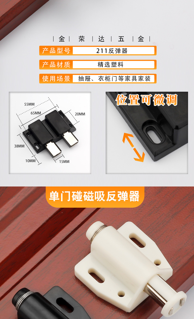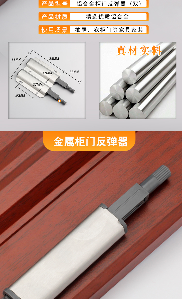 金栄達アルミニウム合金単重反発器キャビネットドアステンレス反発器取っ手なし押圧式反発器