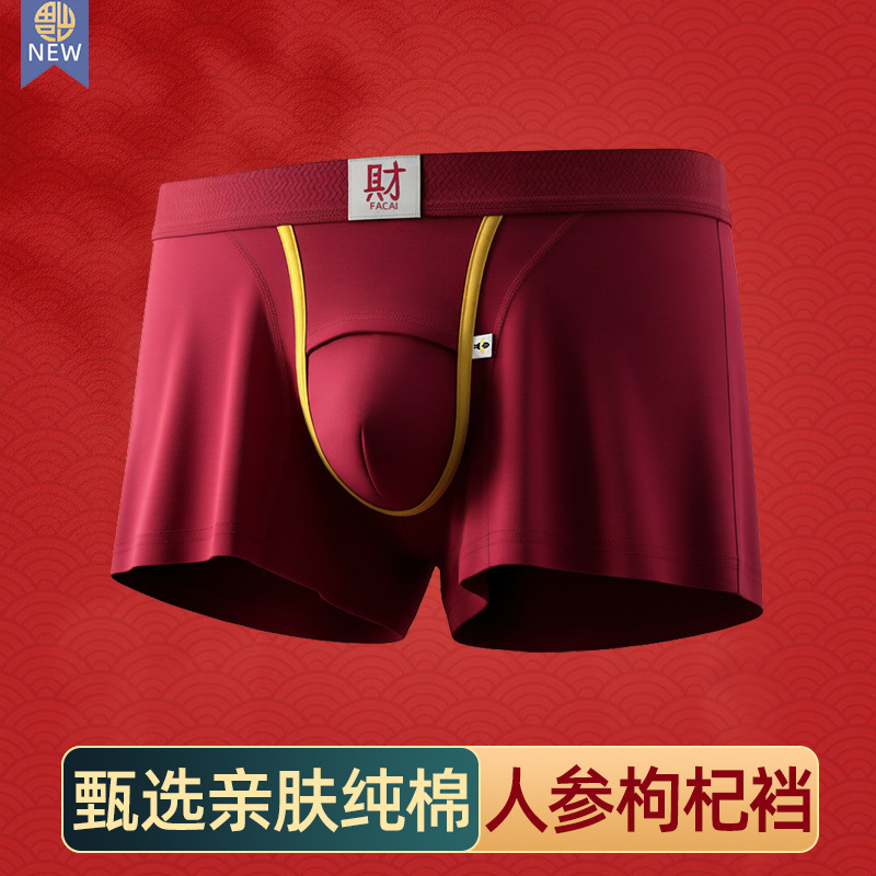 新款本命年纯色酒红色男款男士内裤青少年男款抑菌透气舒适平角裤