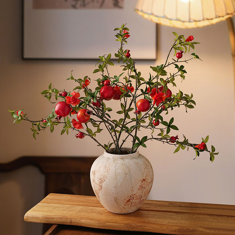 侘び寂び風陶器花瓶、高級感のあるフラワーアレンジメント、リビングや玄関の装飾、家庭用レトロなモデルルームの飾り物