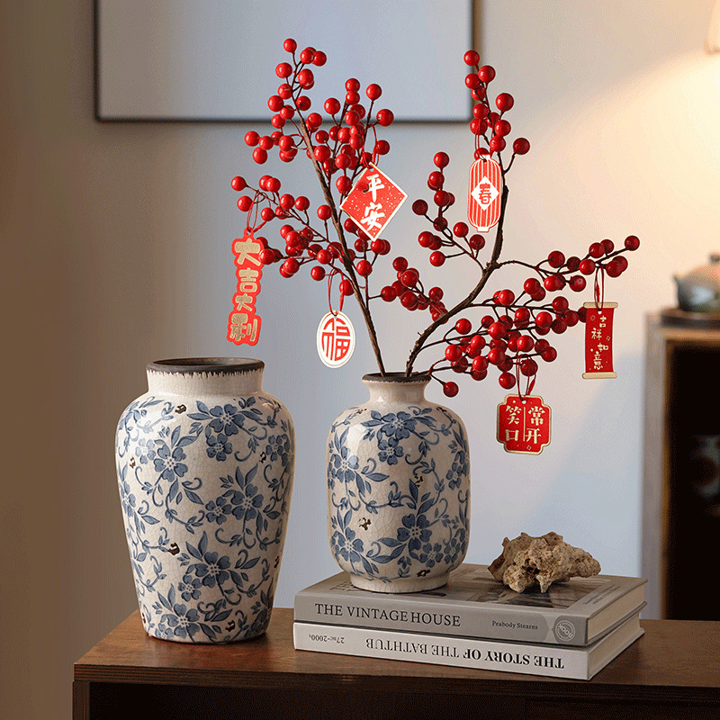 景徳鎮陶磁器花瓶レトロ新中国式陶缶寂風高級感生け花花瓶リビング装飾置物