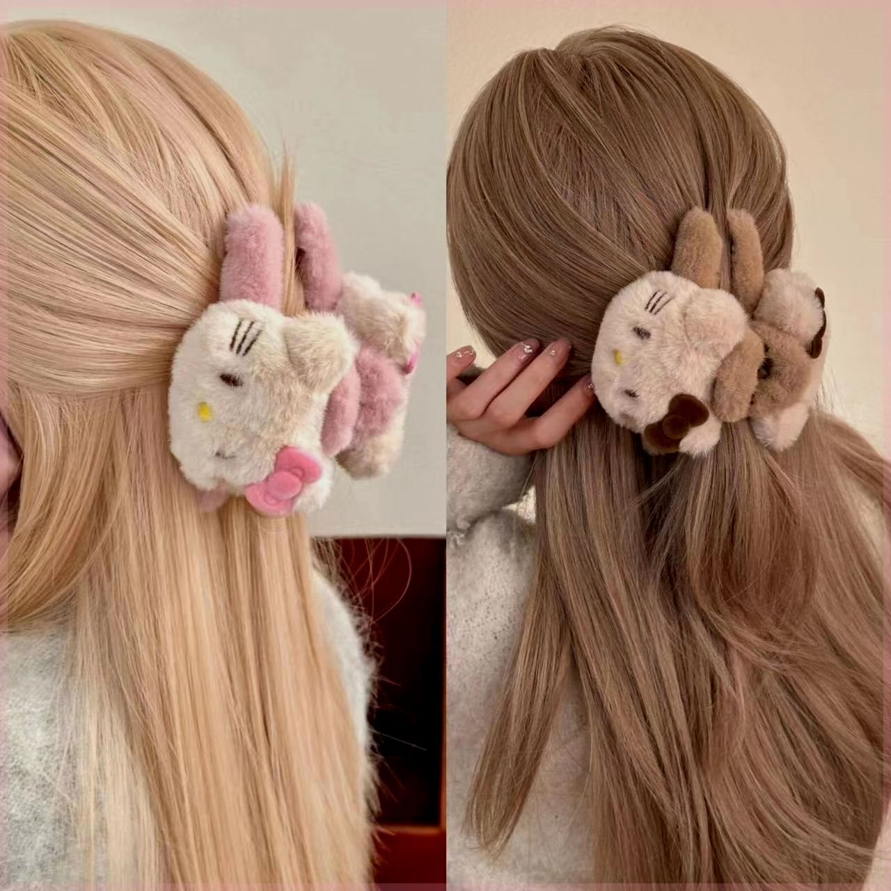 韓国の秋冬の新型の毛がふわふわしています。大きいサイズの暖かい後頭部の髪を挟みます。