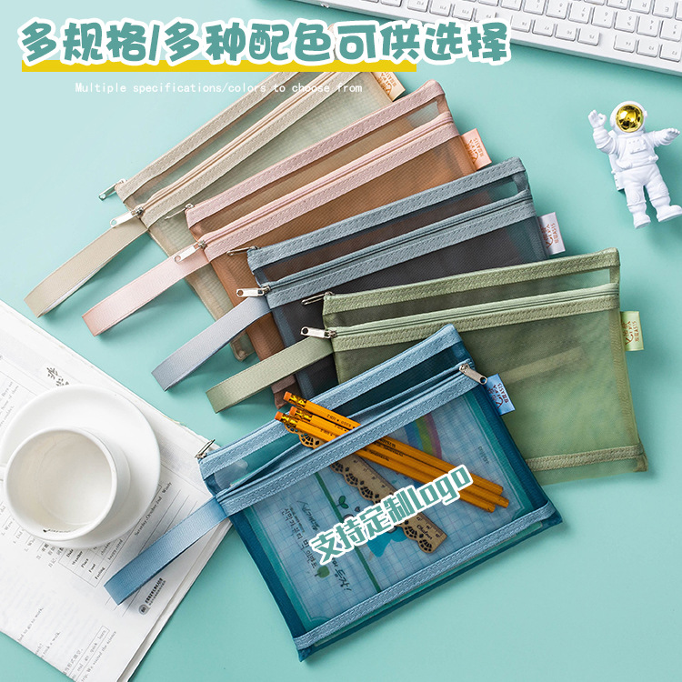 透明ナイロンメッシュバッグ化粧品積み木収納袋ジッパー試巻資料袋学生筆袋科目袋