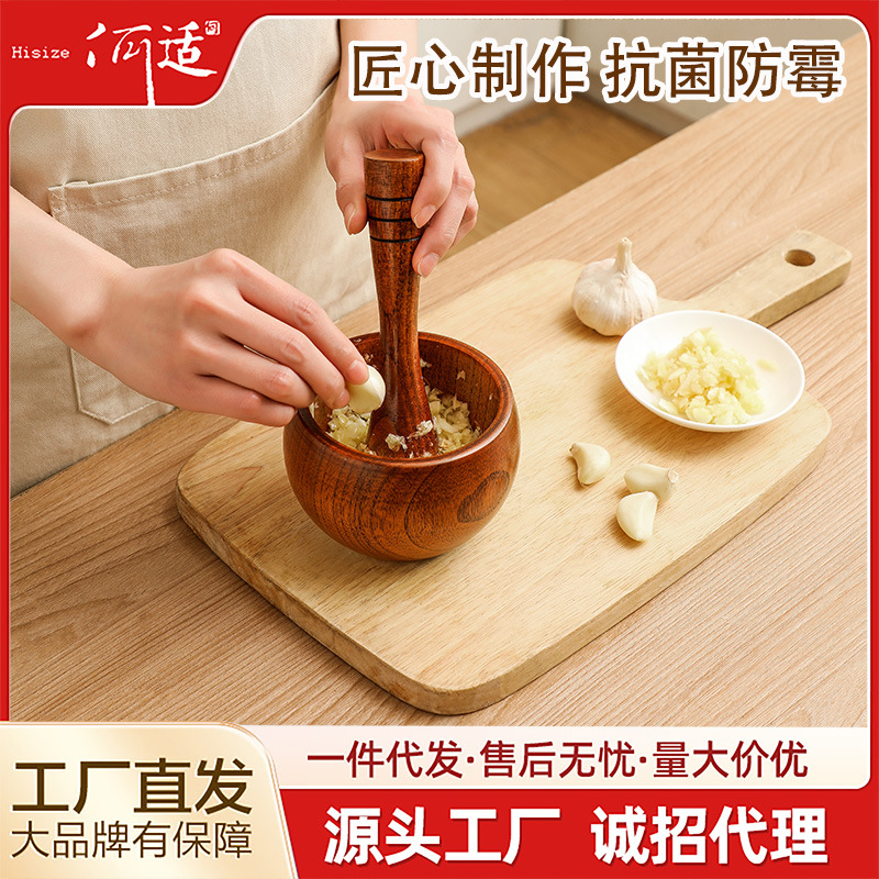 何適の家庭用ニンニクのニンニクの泥器はニンニクの神器のニンニクの鉢を剥ぎ取って、手動の木製の実木のニンニクの器の家庭用をいじります。