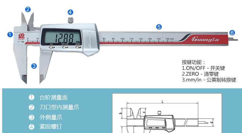 広陸桂林原点ステンレス電子デジタル表示スケール工業級高精度表付きノギス0-150
