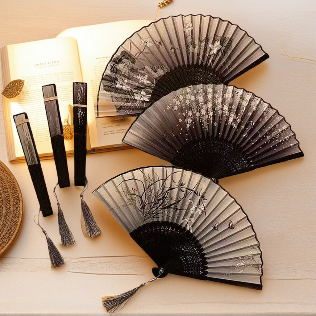 折扇古風扇子中国風携帯扇子古典漢服折り畳み扇女蘭布扇