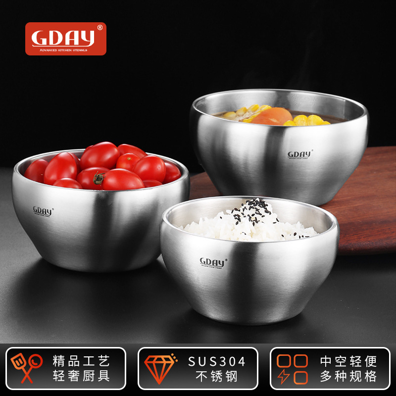 Gday 304ステンレスボウル二重小碗一個家庭用子供食事碗砂光碗スープ碗大人スープ碗