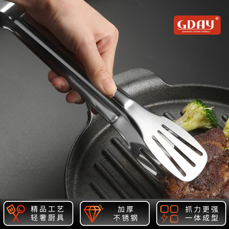 Gday厚いパンクリップステンレス食品クリップ家庭用キッチン揚げステーキマントーパン食品焼肉クリップ