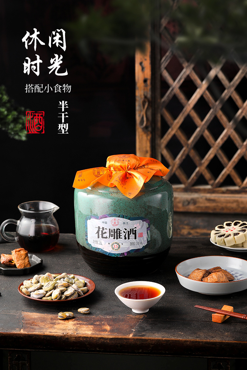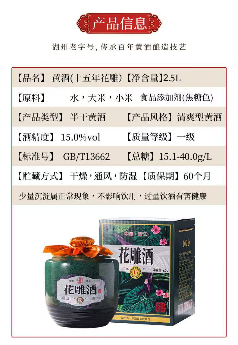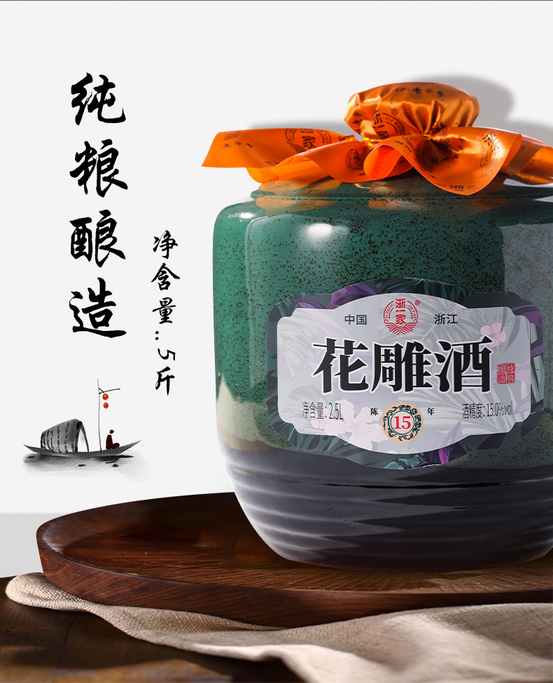 メーカーの源卸売り穀物の職人心醸造浙江黄酒半乾型2.5l壇装花彫刻黄酒礼箱