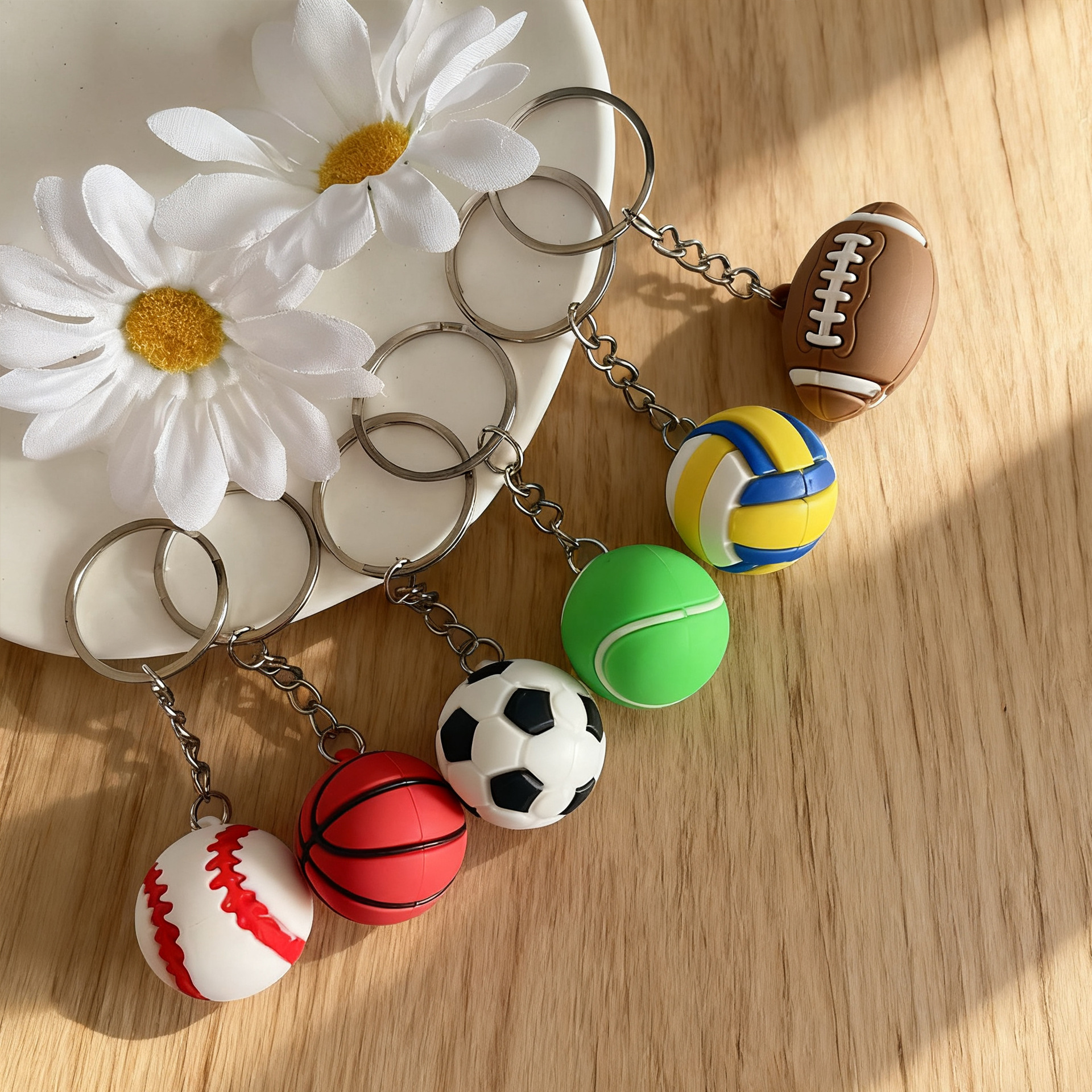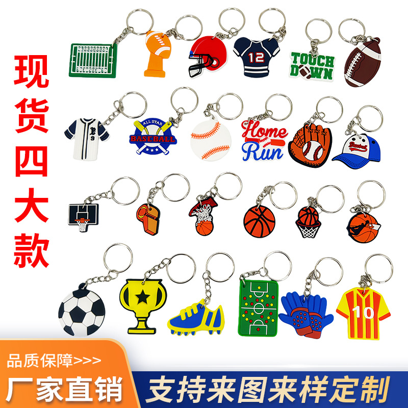 跨境现货足球橄榄球系列pvc软胶钥匙链挂坠棒球篮球饰品钥匙扣