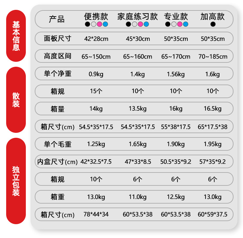 ポータブルブラック,ポータブルホワイト,ポータブルピンク,ポータブルブルー,練習用ブラック,練習用ホワイト,練習用ピンク,練習用ブルー,プロフェッショナルブラック,プロフェッショナルブラックオレンジ(限定版),プロフェッショナルホワイト,プロフェッショナルピンク,プロフェッショナルブルー,1.7m高バージョン ブラック