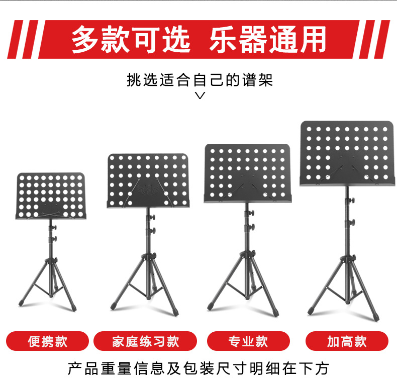 ポータブル折りたたみ譜面台、昇降譜面台、リハーサルパフォーマンス譜面台、ギターピアノ一般楽器譜面台メーカー