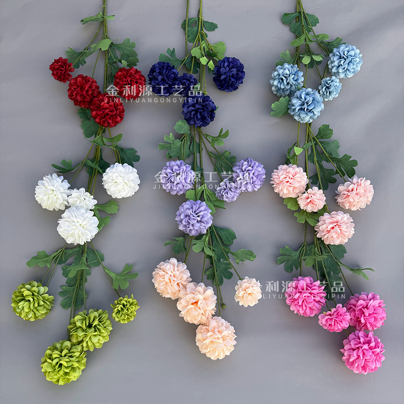 ボール型シミュレーション花4頭美しい球菊結婚式路引花材クロスボーダー人工造花装飾