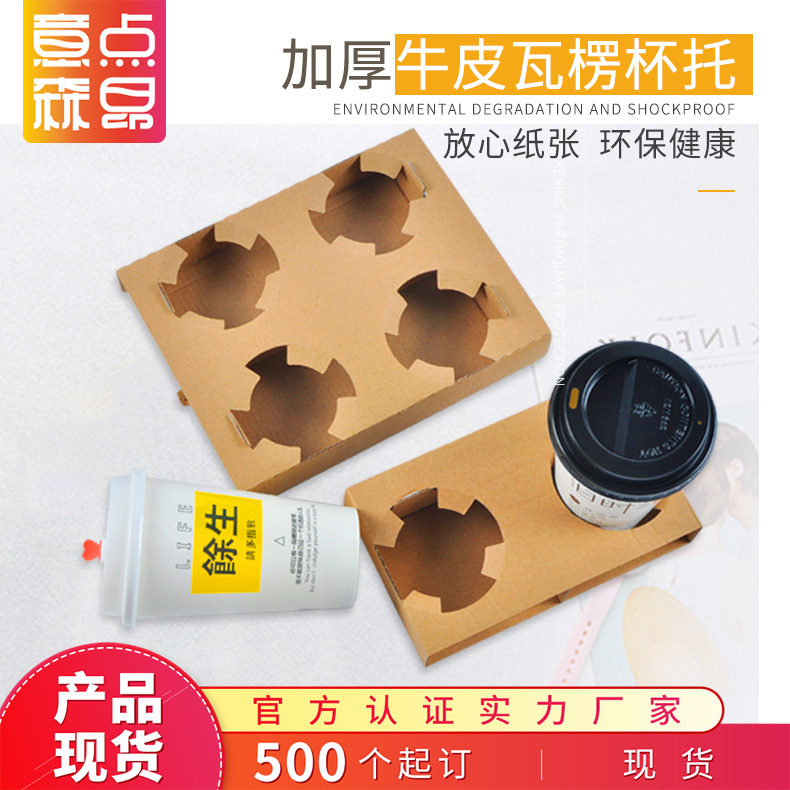 現物2格4段段ボールカップホルダー使い捨てミルクティーコーヒーの出前包装ベースの裏地卸売り紙カップホルダー