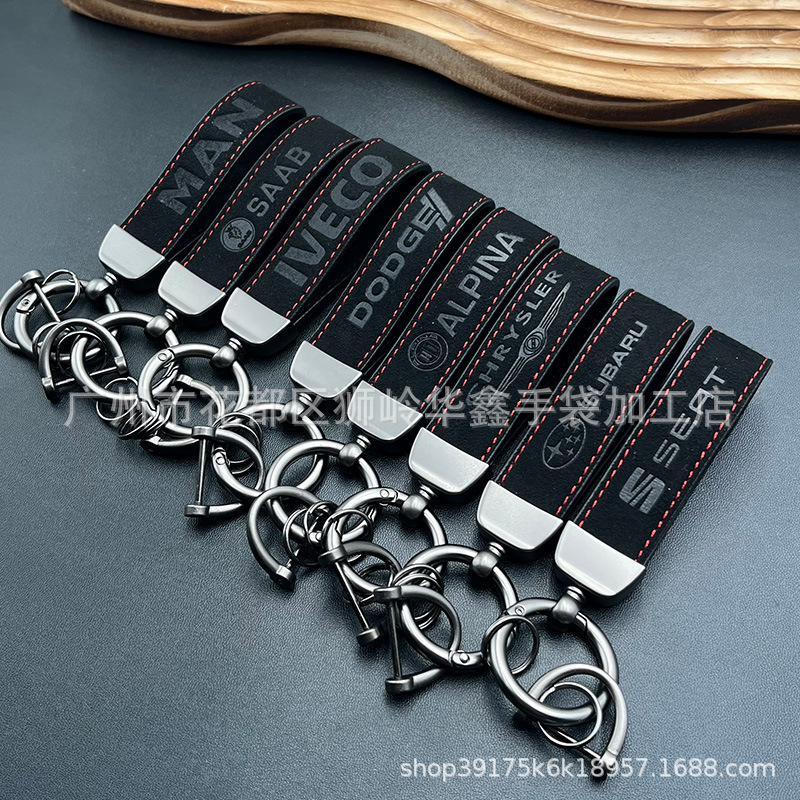 外贸跨境黑色翻毛皮钥匙扣潮牌汽车钥匙套车标吸汗防静电工厂批发
