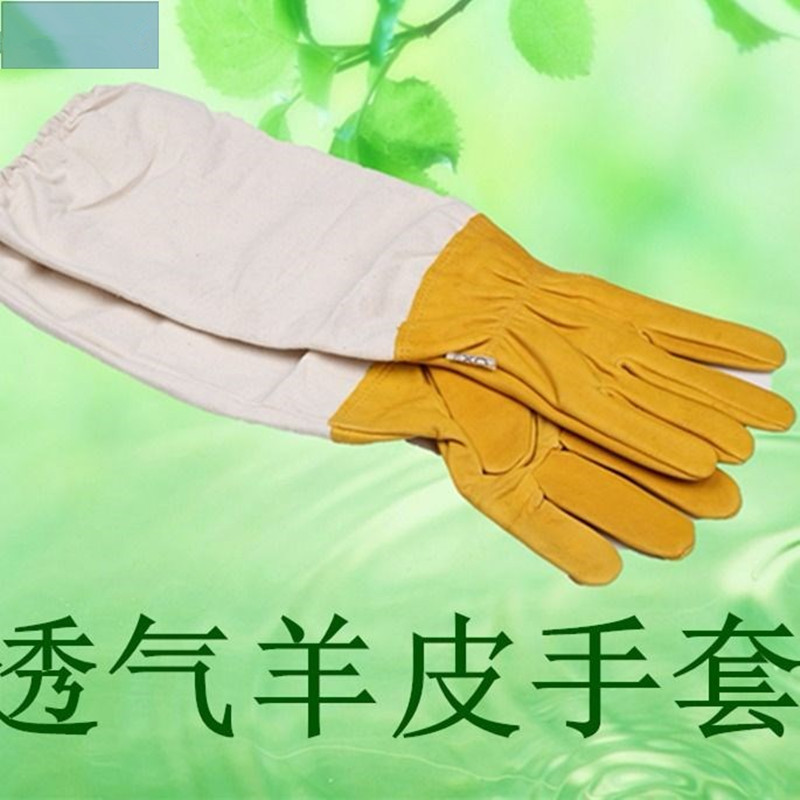 メーカー卸売り蜂防止手袋羊皮手袋厚手帆布養蜂手袋白色黄色羊皮防護