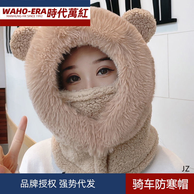 帽子女性秋冬保温自転車防風防寒帽マフラー一体電気自動車顔マスク子供