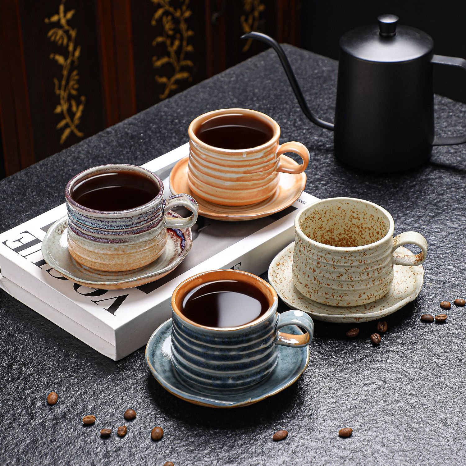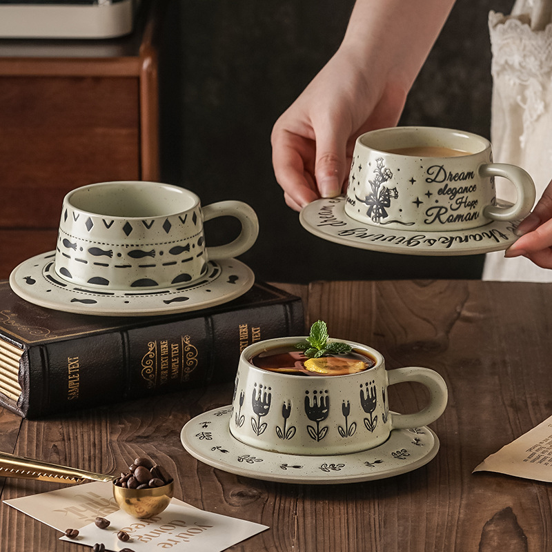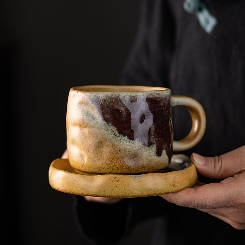 潮州コーヒーカップとソーサーレトロスタイルラフ陶器中東国境を越えた創造的な個性シンプルなラテアートセラミック砂粘土小さなつや消し