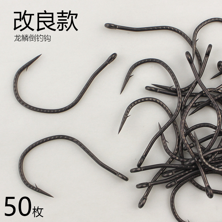 龍鱗改良型逆釣り針、超滑り止めテフロンコーティングルアーフィッシングフック、ナマズ、マス、ルアーフィッシングフック、ソフトベイト