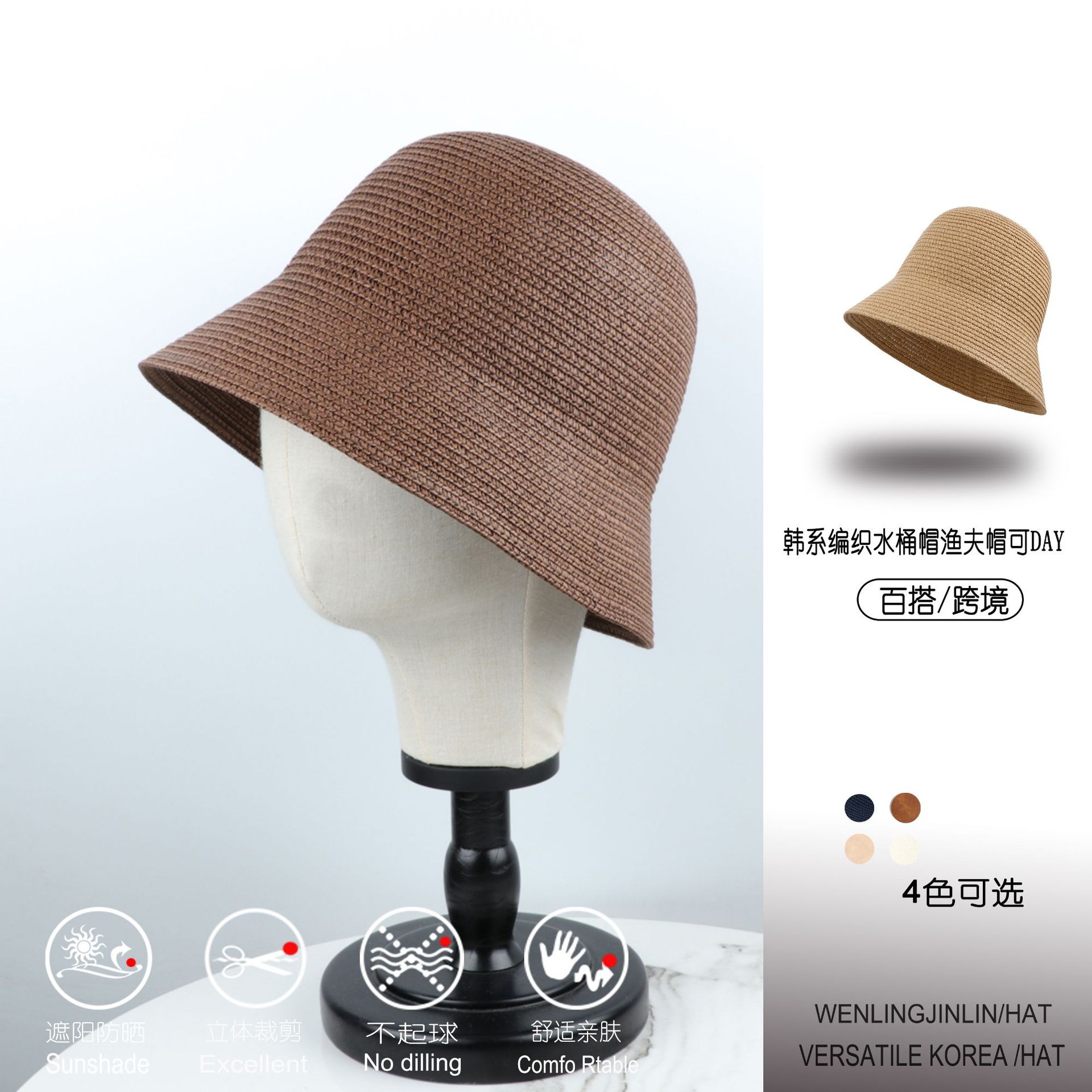 生放送人気韓国夏無地多用途クロスボーダーカジュアル織りバケットハットフィッシャーマンハットデイバイザー
