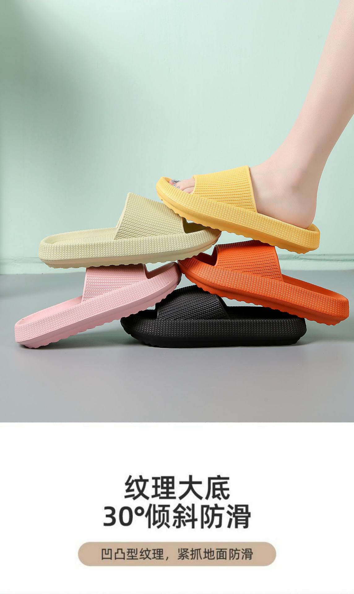 卸売越境家庭用スリッパ 女性用厚底履き心地抜群 カップル用静音大型EVAサンダル 男性用滑り止め