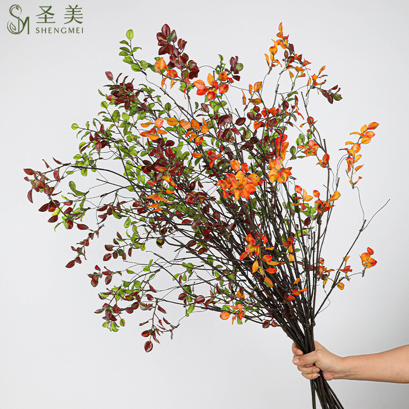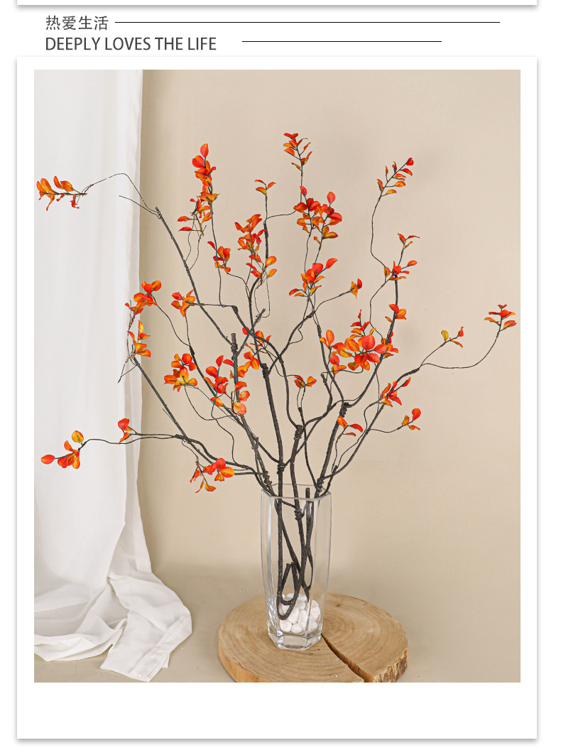 シミュレーション2叉小秋葉枯枝禅意赤色小春葉高級手触り線花材巻き枝形
