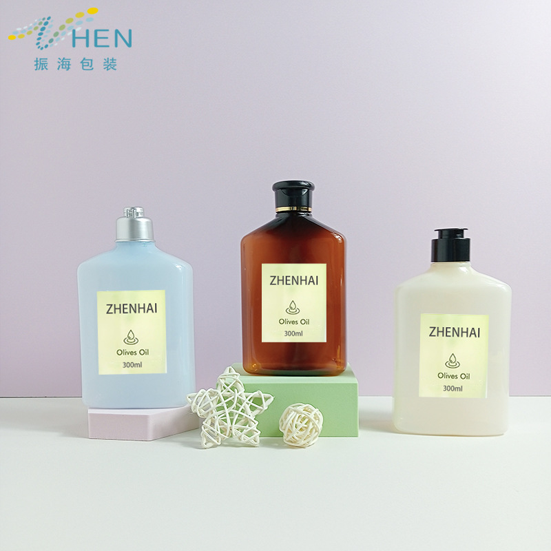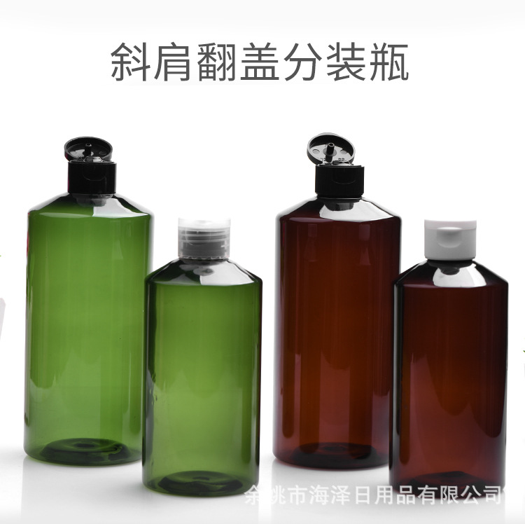 斜め肩プラスチックフラットボトル 300 ミリリットルフリップトップケアボトル PET シャワーオイルボトルシャンプーシャワージェルローション詰め替えボトル