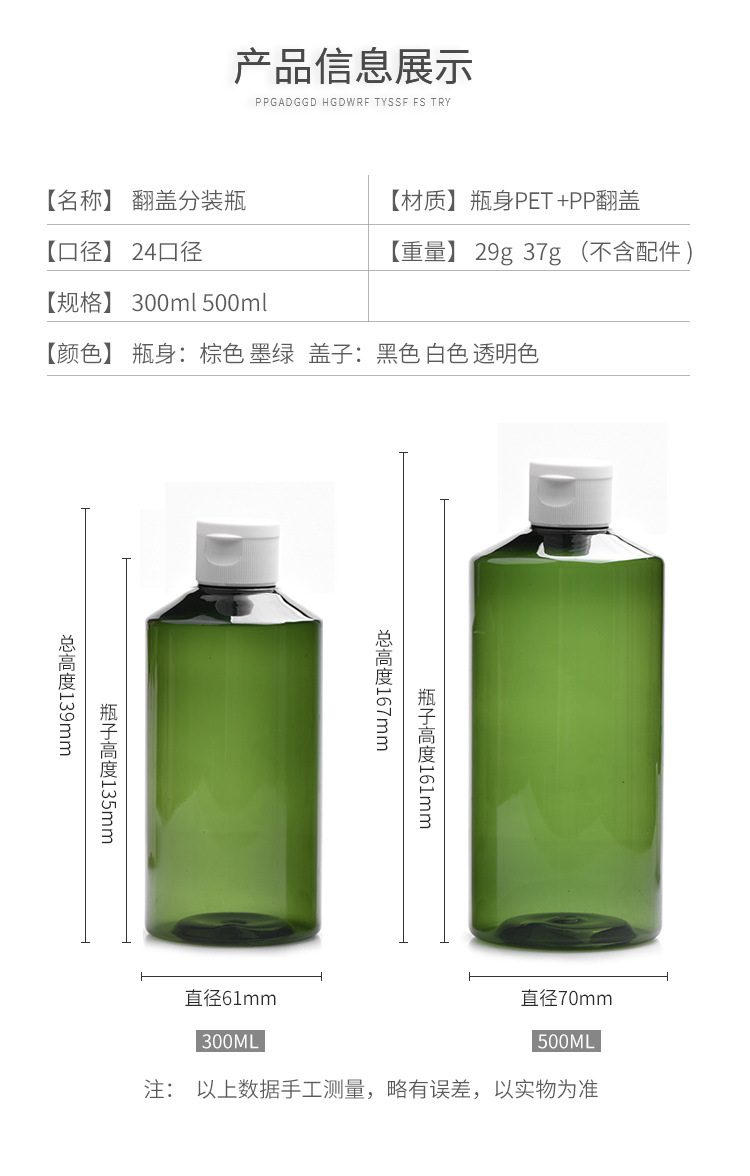 現物300mlプラスチックpet透明入浴露瓶500ml大容量シャンプーボトル