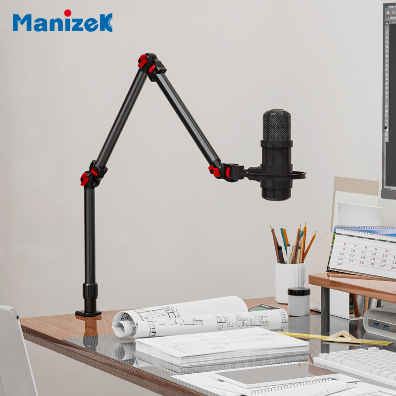 マンジケ386ライブブロードキャスト用サスペンションアームスタンド、マイク、カメラ用補助光、C型デスクトップマジックアームスタンド