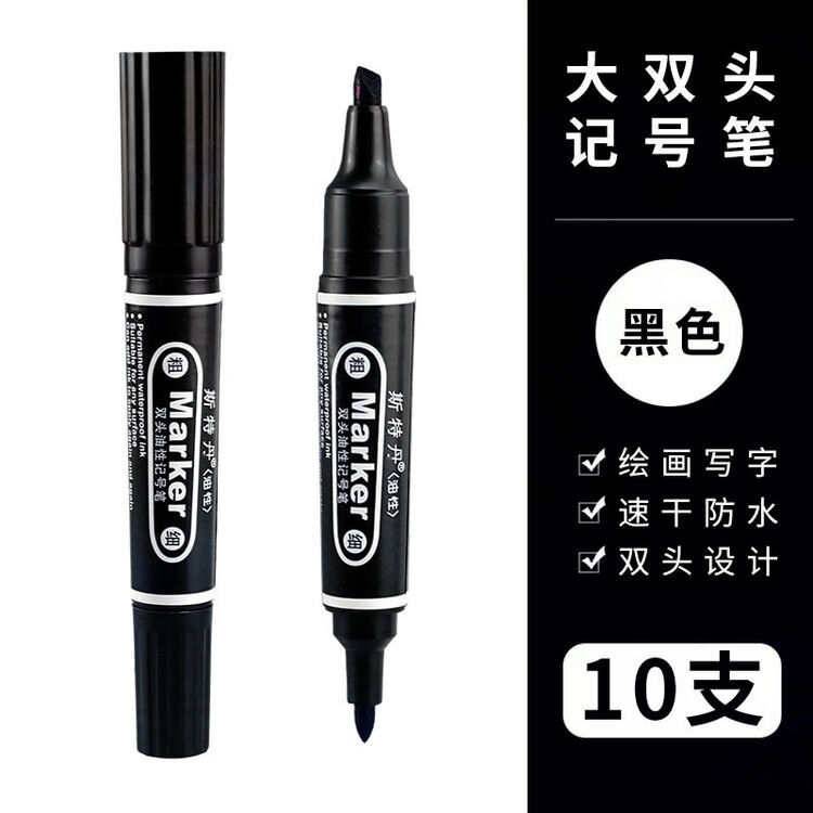 大双头油性记号笔黑色勾线笔马克笔防水粗头大头笔防水不掉色快递