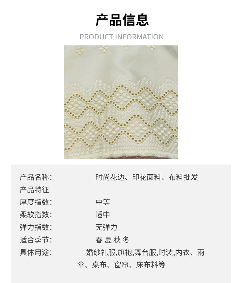 1. 规格:每片为5码,宽度为:122-135厘米,每款至少拍5码下单,每片长度规格为5码,不裁剪销售,多片请按5码的倍数下单。凡是拍一码单,商家可做不发货退款处理。