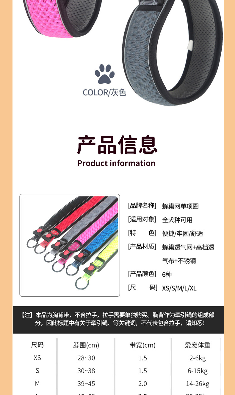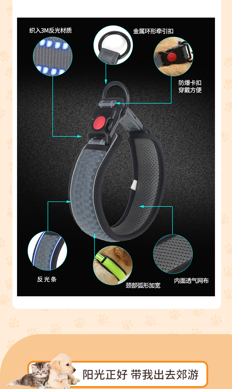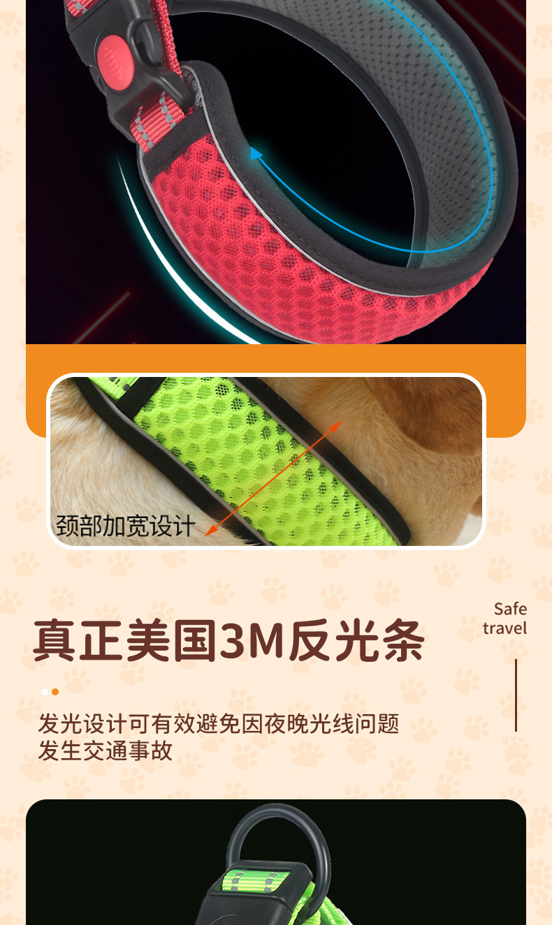 新しいハニカムネットシングルペット反射首輪犬の首輪犬の首輪大小型犬反射首輪工場直