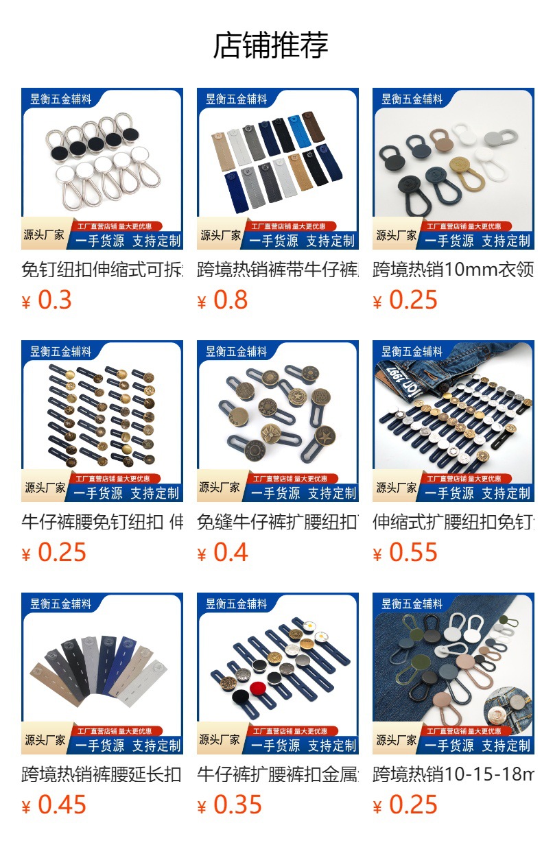 クロスボーダー人気10-15-19mm金属スプリング腰拡大ボタン襟袖口延長ボタン
