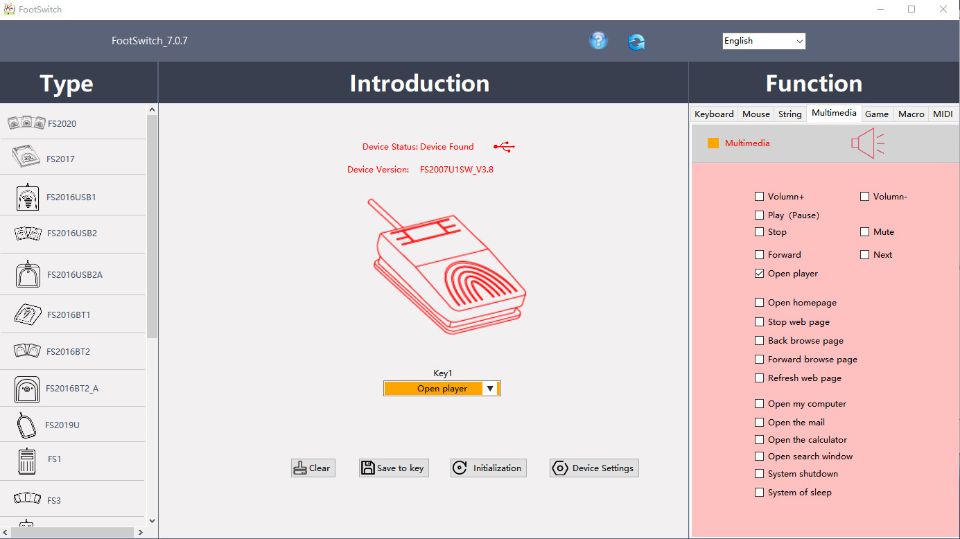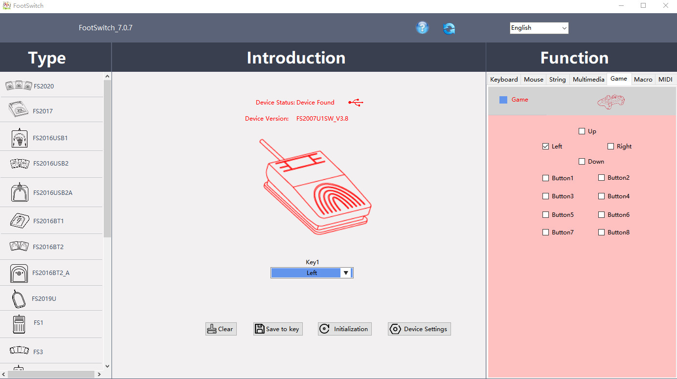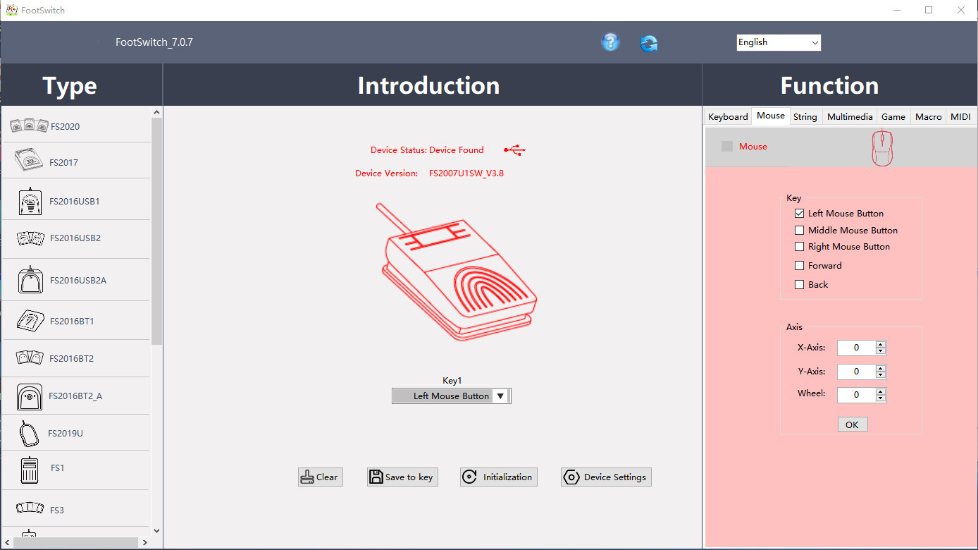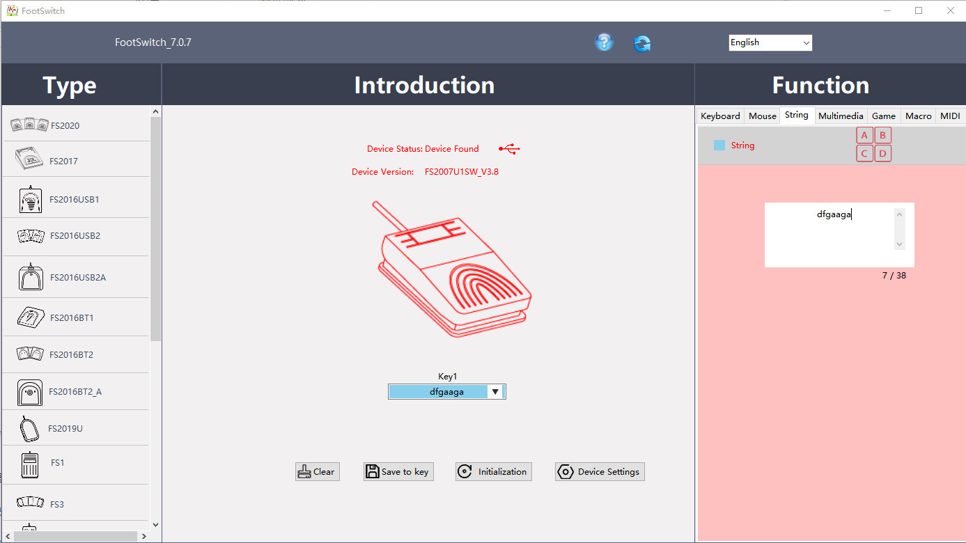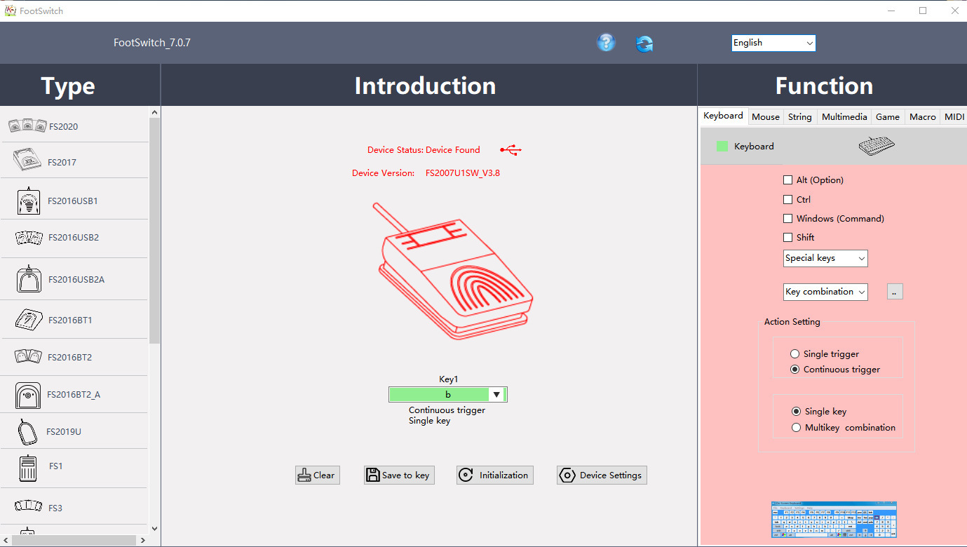 当你想更改按键的功能时,可以用FootSwitch软件修改按键功能: