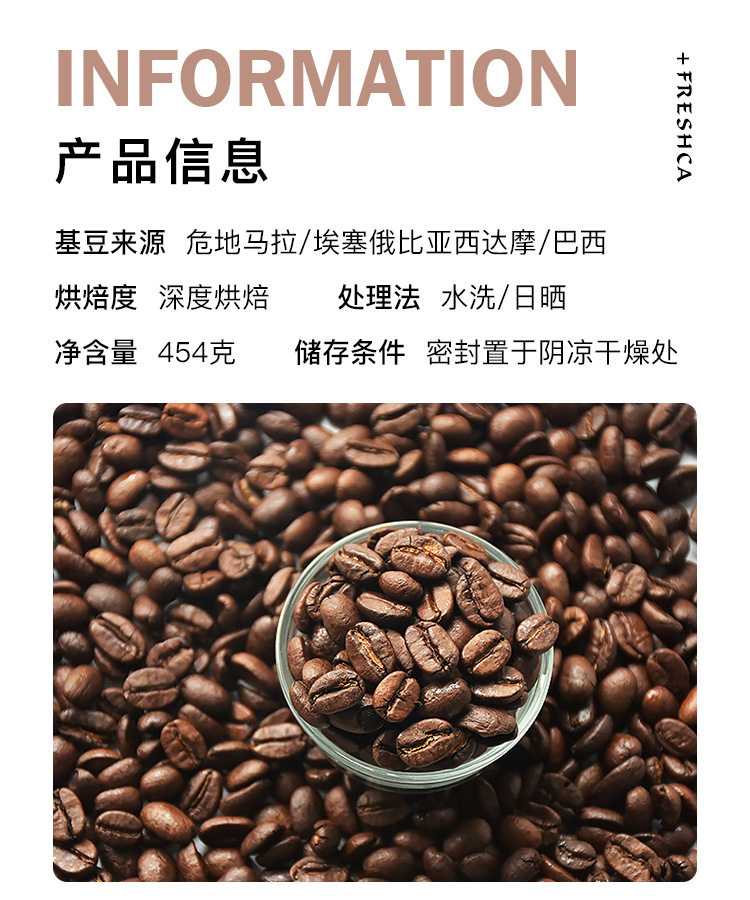 フレズコーヒー豆問屋用純ブラックコーヒー新鮮焙煎可現粉マントニン風味豆454g