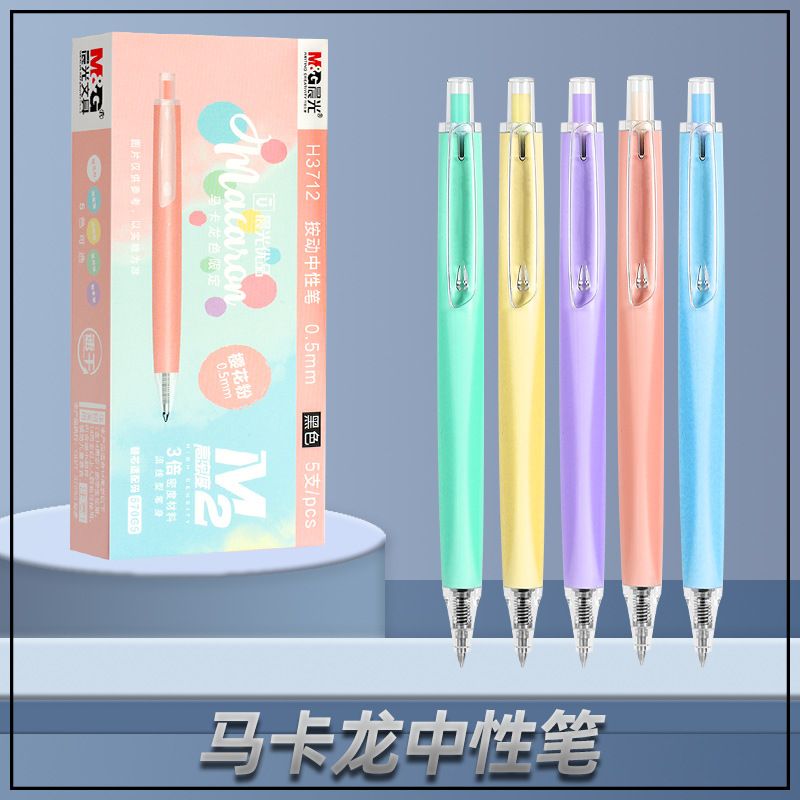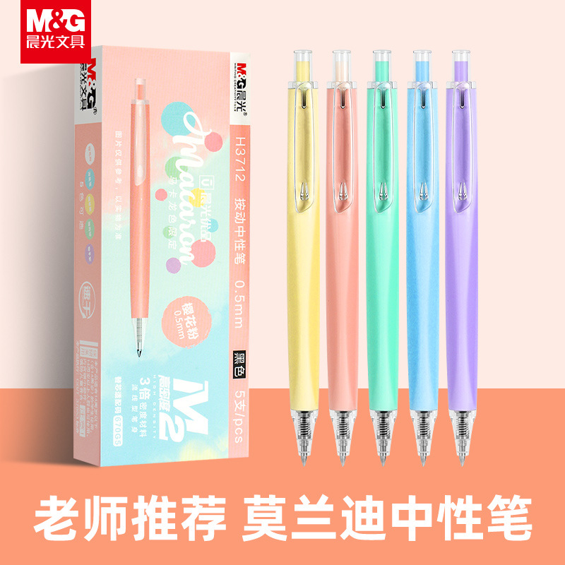 晨光优品按动中性笔芯黑0.5mm马卡龙限定签字水笔红笔学生用H3701