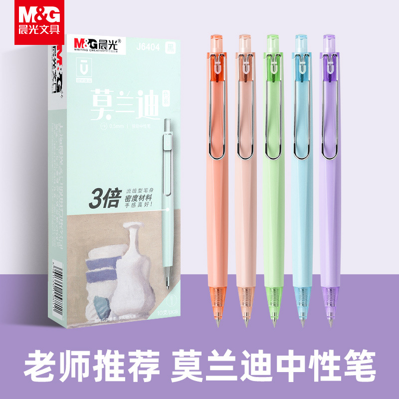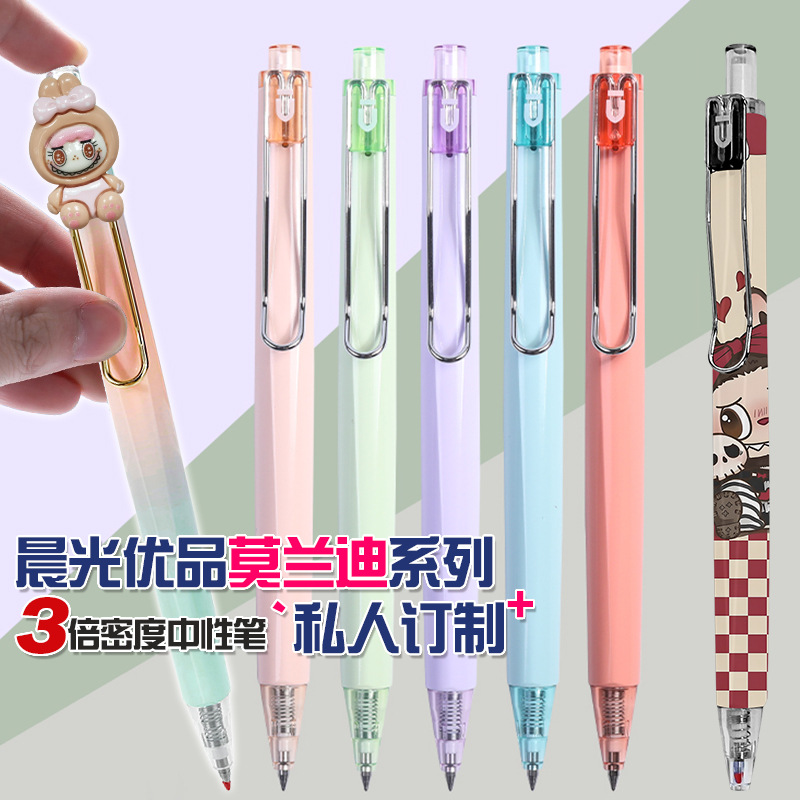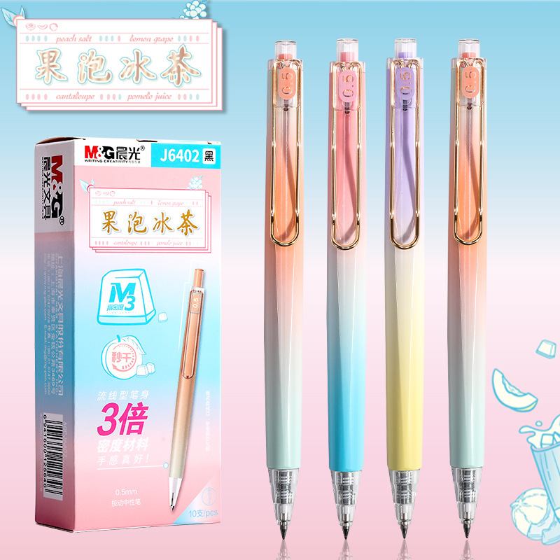晨光优品三倍密度莫兰迪果泡冰茶重感按动中性笔logo商标图片彩印