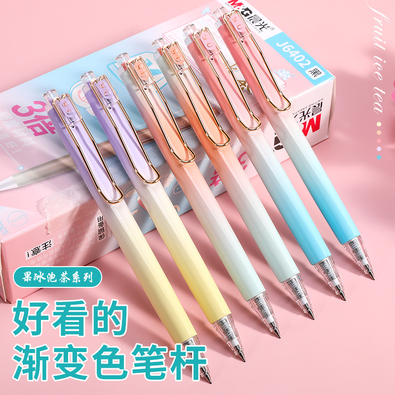 晨光J6402果泡冰茶中性笔0.5mm三倍高密度马卡龙按动签字笔黑水笔