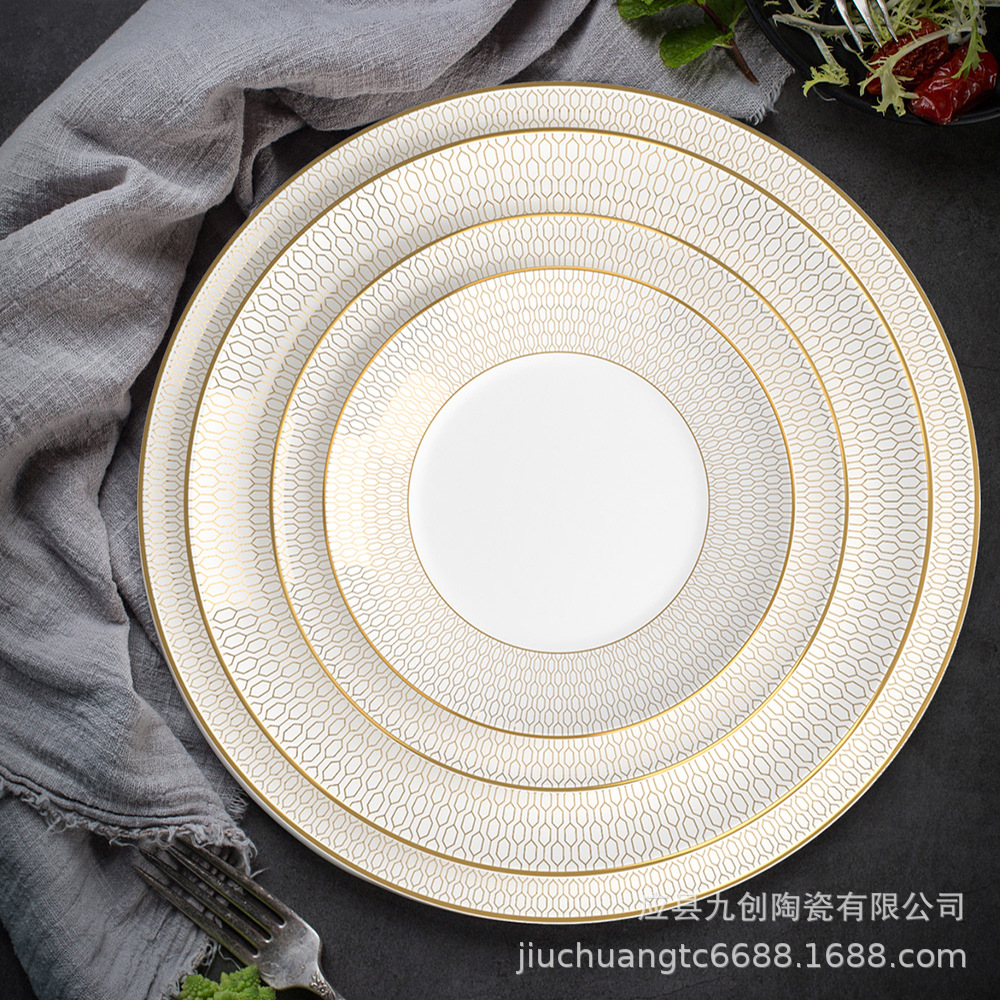 軽豪華洋食食器皿陶磁器ステーキ皿ネット赤皿北欧家庭用平皿金辺皿パスタ皿