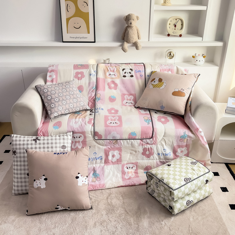 3. 产品特点:1、多功能,打开可以当空调被子,合拢当靠垫或者抱枕,办公室,汽车,旅行小休必被,收纳方便不占空间。