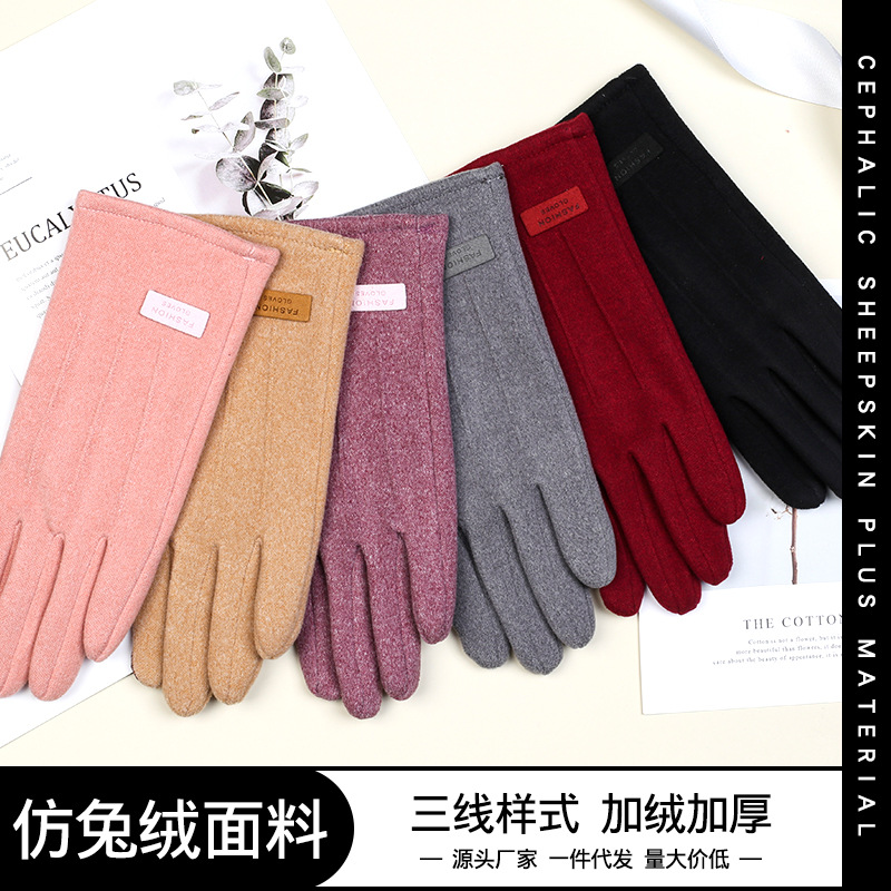 冬用プラスベルベットで暖かく、アウトドアスポーツ、ドライブ、サイクリング、プラスベルベットと厚み、タッチスクリーン、布製手袋