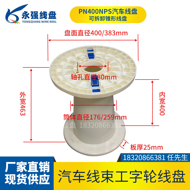 400NPSテーパー工字輪ゴム軸取り外し可能自動車ボビンケーブル電源コード回転プラスチックリール
