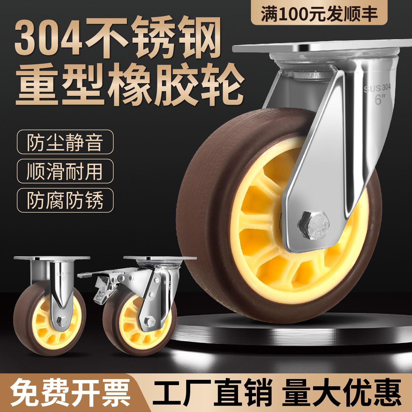 304 ステンレス鋼 6inch ゴム製キャスターホイール 4 インチ 5inch 8inch ユニバーサルホイール防水ブレーキ付きサイレント TPR 高耐久キャスターホイール