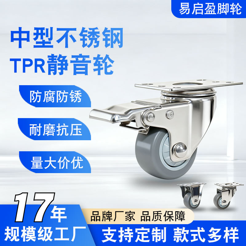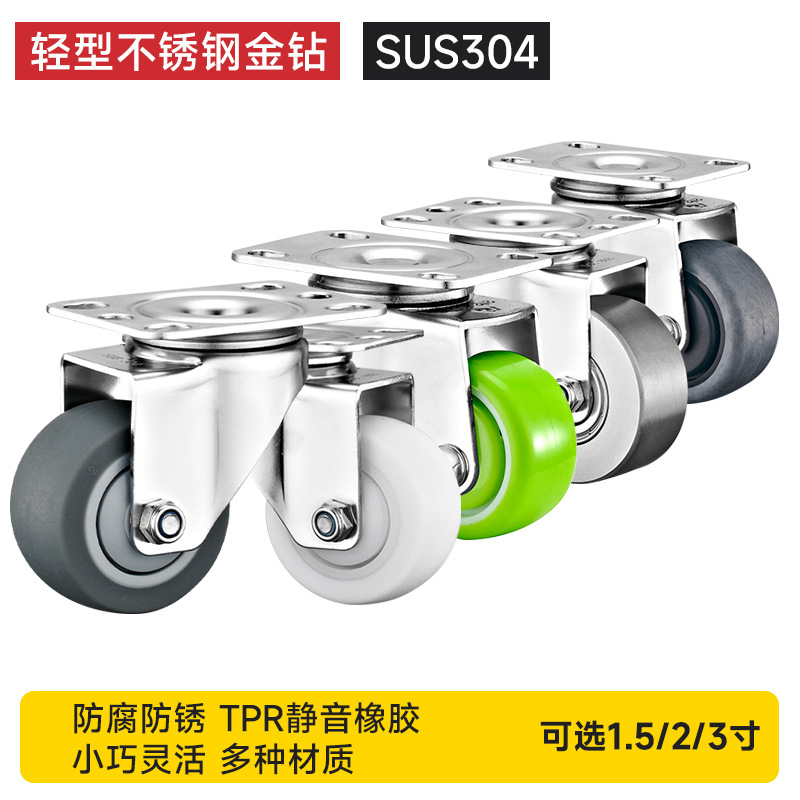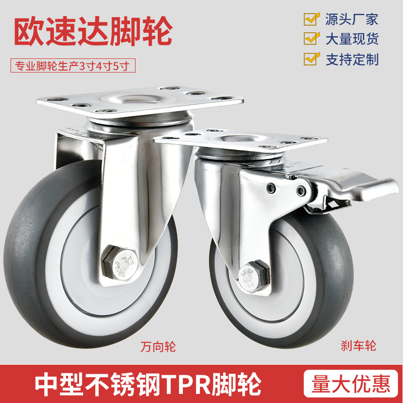 3インチ4/5インチ中型304ステンレス弾力静音tpr工業万能輪防水防錆手押し車キャスター