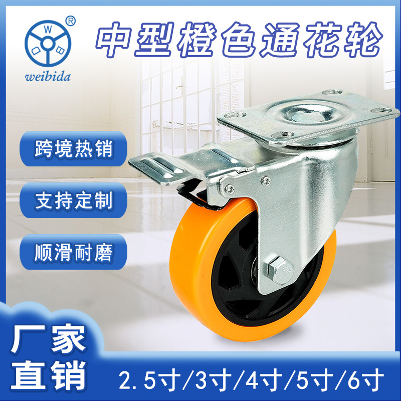 卸売オレンジスルーフラワーホイール 3/4/ 5inch フラット PP ユニバーサルホイールブレーキ耐荷重方向性ホイールトレーラーキャスター