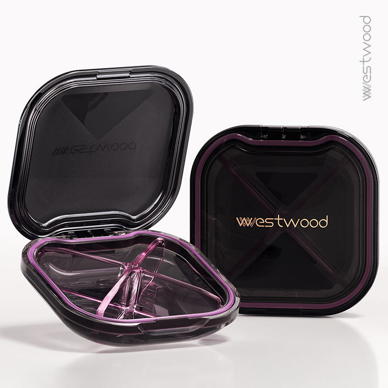 日本の規格品の小さい薬の箱の4格は携帯用小さいサイズを分けて持ち歩いてミニの7日間の薬の箱の密封の大容量を持ちます。