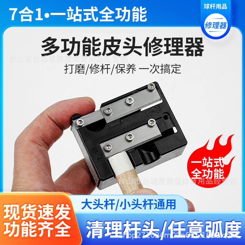 七合一台球杆皮头打磨器多功能修理工具一站式削刨卷刀转笔刀合一